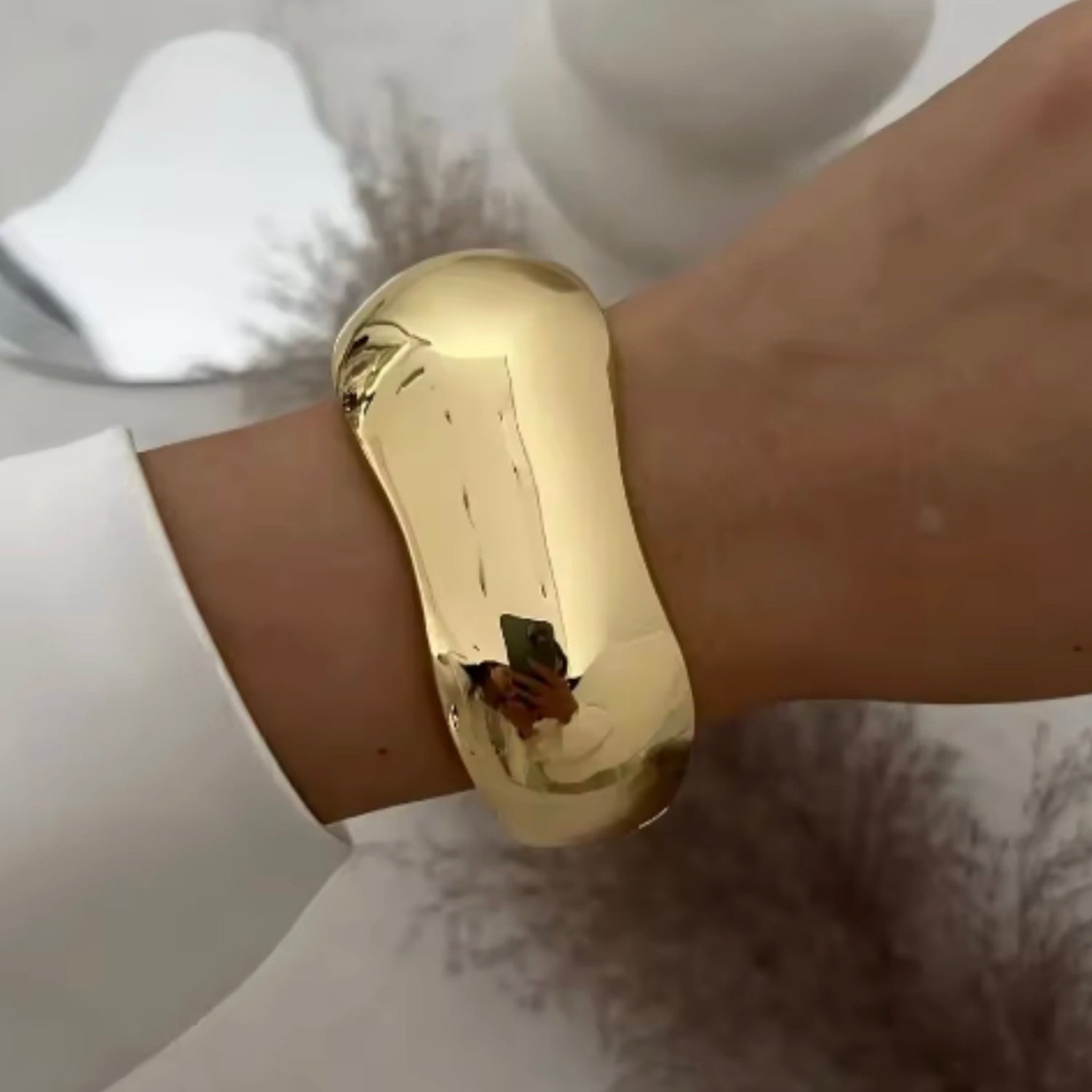 A sleek, modern bangle with a softly curved silhouette and polished gold finish. Designed with clean lines and subtle texture, it adds understated sophistication to any look. Perfect for effortless, everyday style or refined layering.