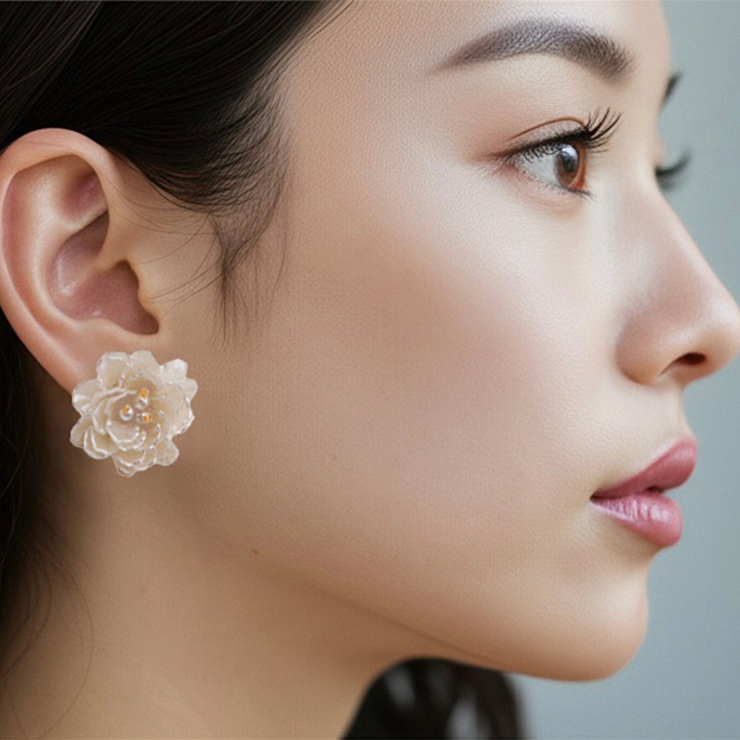 These floral earrings bring a soft, elegant touch to any look. Designed with a delicate bloom and a luminous finish, they brighten the face with subtle sophistication. Perfectly sized for everyday wear, they blend timeless charm with modern simplicity.