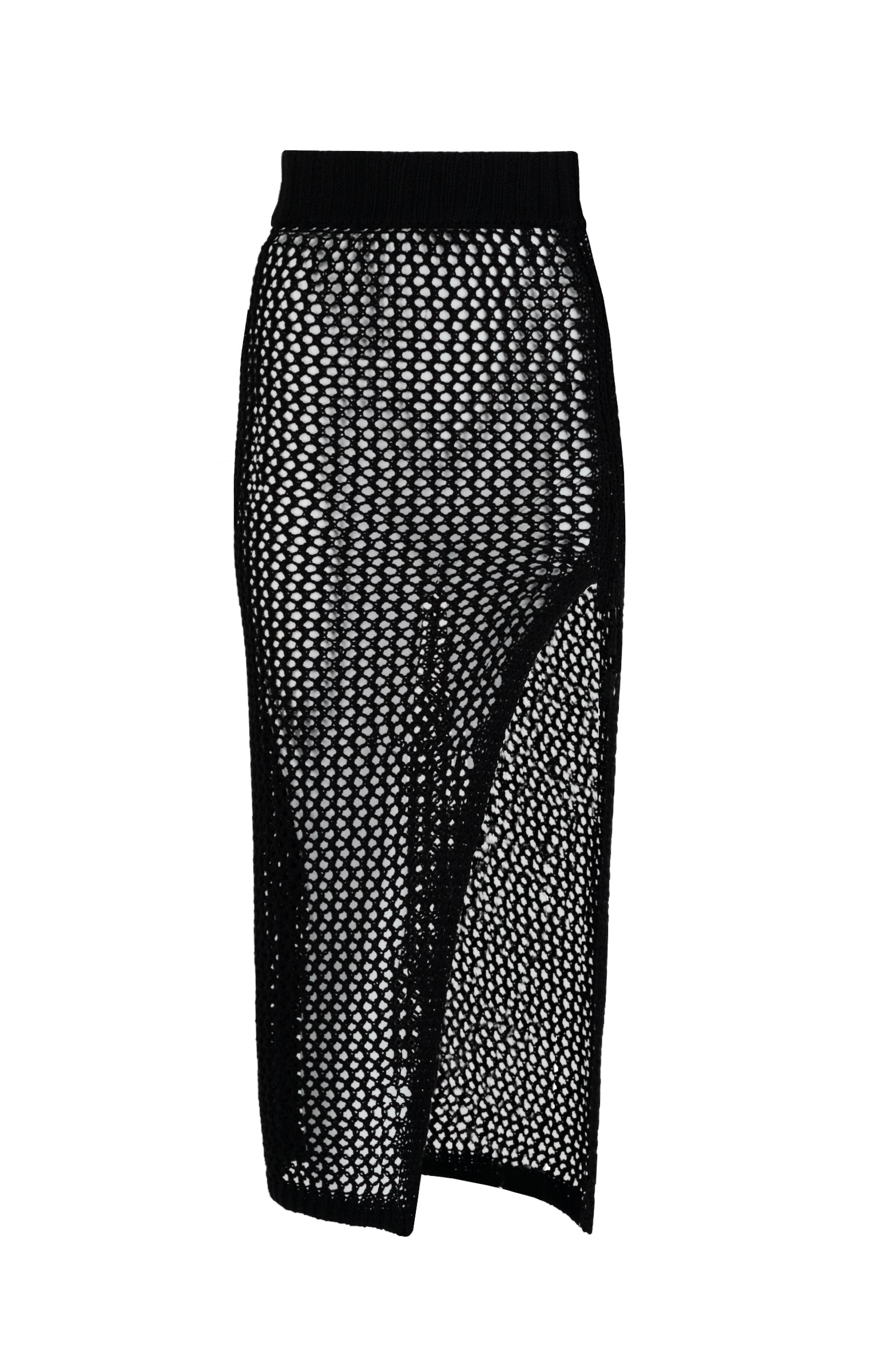 Made from a luxe cotton, this crochet knit midi skirt is effortless as it is special. Complete with a wide elastic waistband, a high side slit and open crochet design.