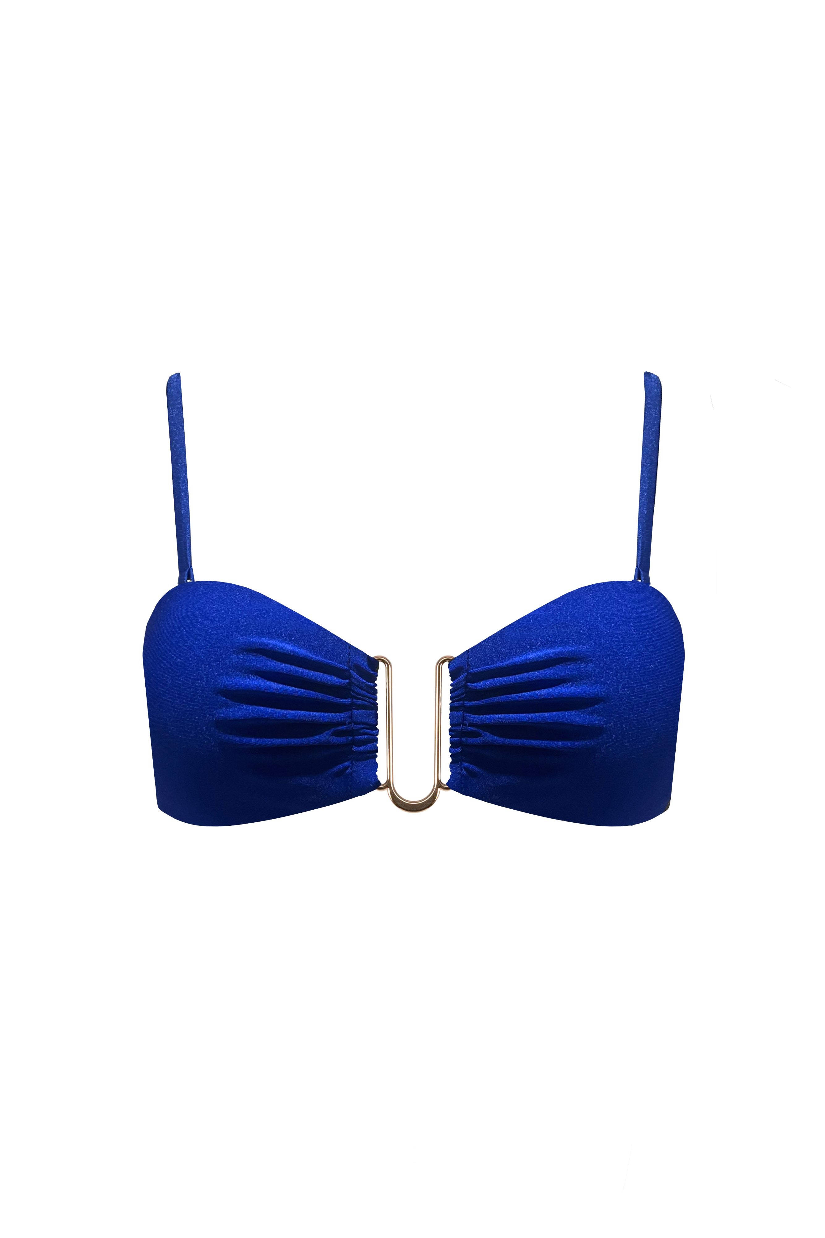 The Cindy Bikini Top features a structured, bandeau design that provides both support and style. The custom gold detail at the front and sweetheart neckline creates a feminine and flattering silhouette, making it a perfect choice for chic poolside or beachwear.