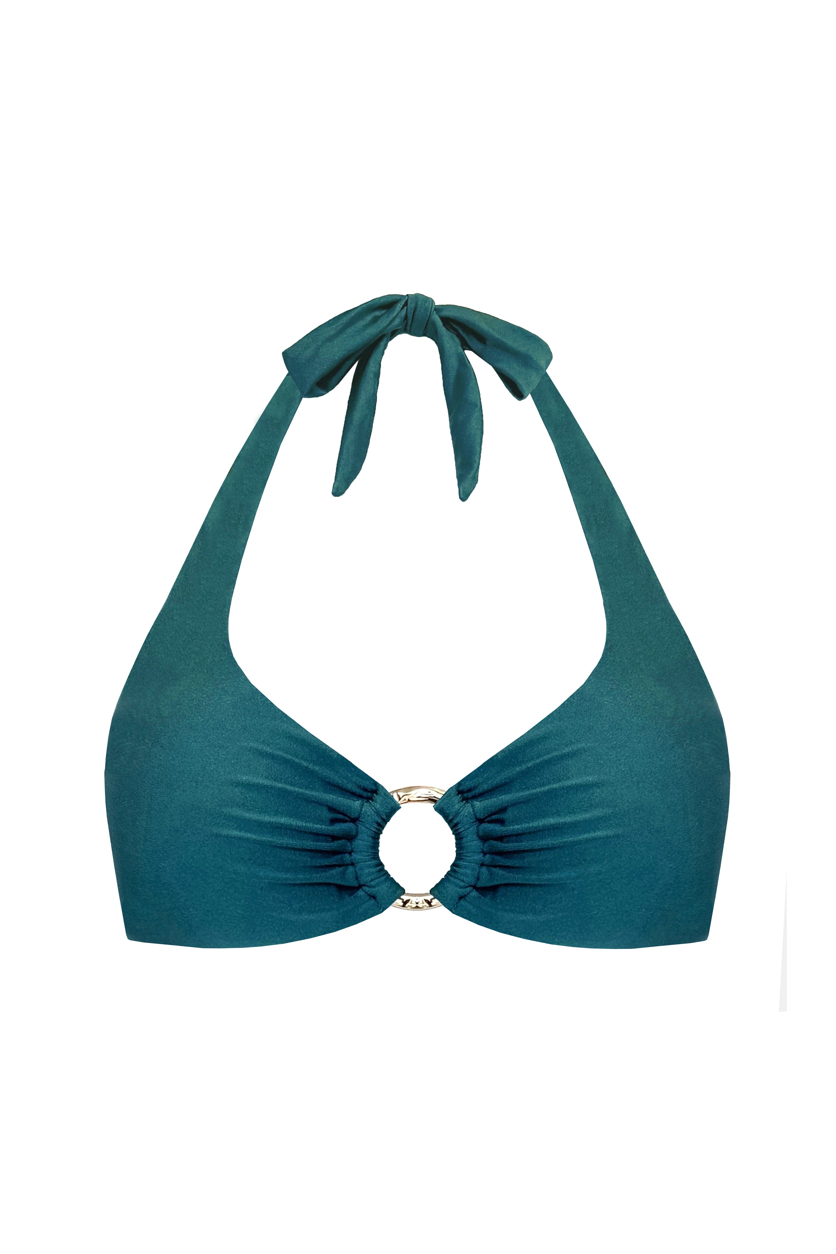 Sculpted for sophistication, the Nicole Halter Bikini Top is designed to flatter with timeless elegance. Crafted from a silky-soft, high-performance fabric with a subtle sheen, this piece features a supportive halter neckline that ties at the neck for an adjustable fit.