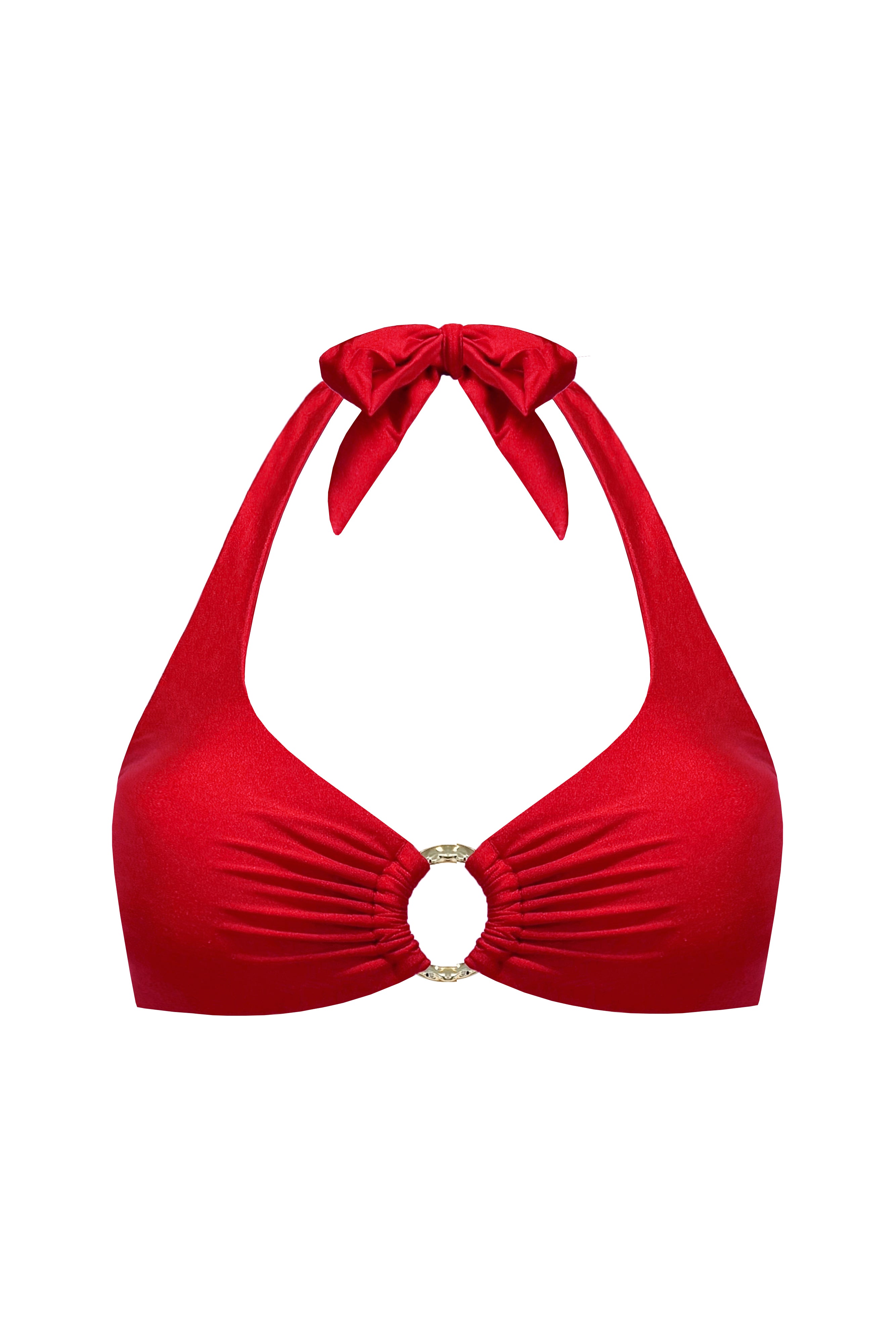 Sculpted for sophistication, the Nicole Halter Bikini Top is designed to flatter with timeless elegance. Crafted from a silky-soft, high-performance fabric with a subtle sheen, this piece features a supportive halter neckline that ties at the neck for an adjustable fit.